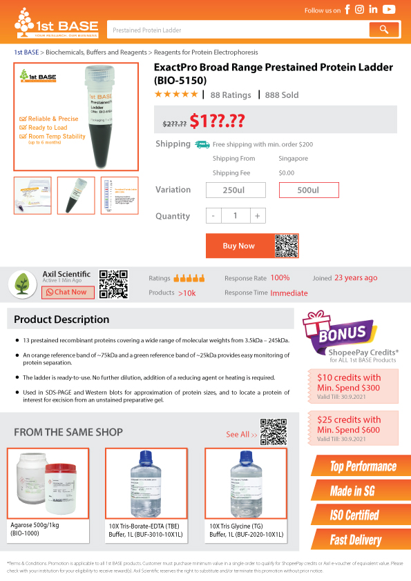 Eliminate any ambiguity from a protein ladder with lesser bands and kickstart your protein research with this 13 band protein ladder!